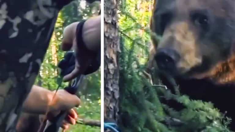 El oso es un animal extraordinario y un formidable depredador. Por eso, observarlos es un gran regalo de la naturaleza… siempre que sea a una distancia prudencial. Y eso es, precisamente, lo que no sucede en este vídeo, en el que el oso se acerca a tan sólo unos centímetros del cazador, que realizaba una espera con arco.