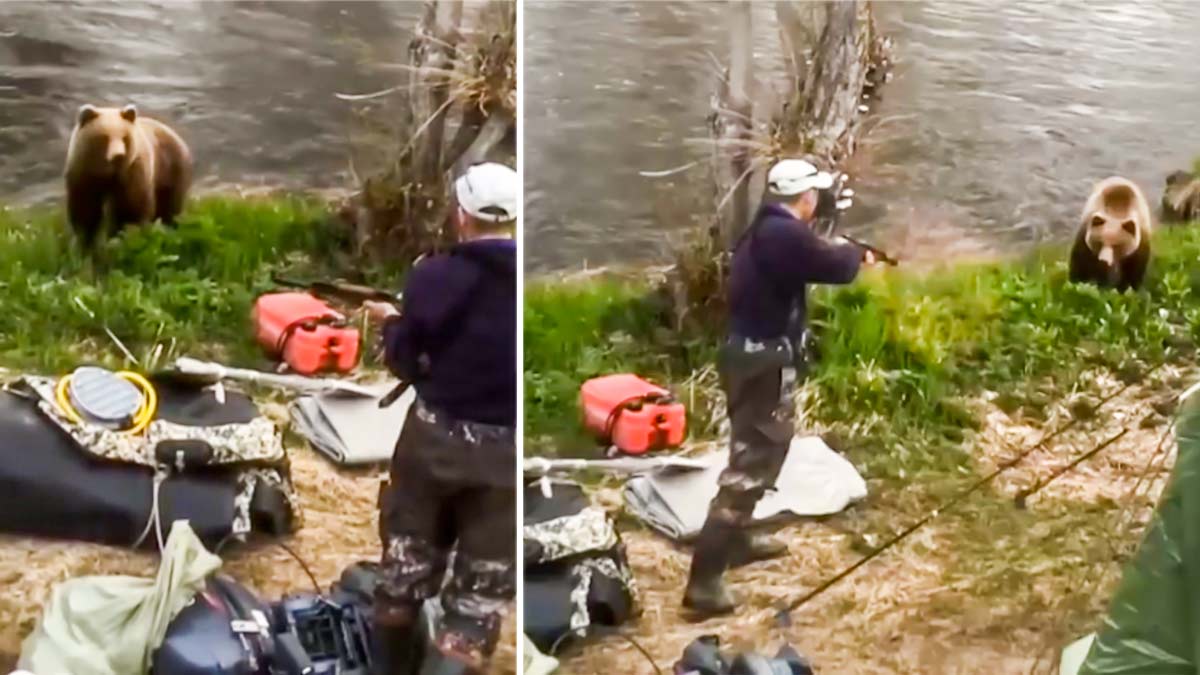 Aunque la caza de osos en España está prohibida, la población de estos es muy reducida y su comportamiento no es agresivo, hay en otros lugares del mundo -donde está grabada esta imagen- en los que otras especies de plantígrados pueden resultar peligrosas.