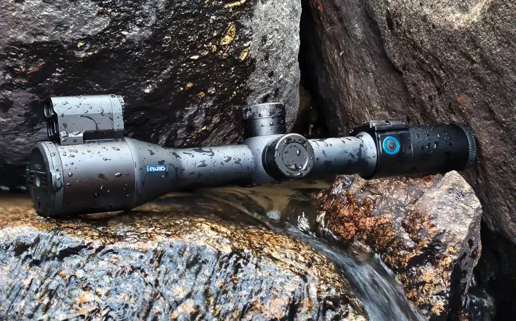 Por su parte, el PARD Night Stalker 4K Pro ofrece una opción algo más compacta y asequible, sin renunciar a muchas de las virtudes de su hermano mayor. Equipa el mismo sensor 4K pero con una pantalla LTPS HD de 800×800 píxeles. Su diseño mantiene el enfoque lateral y la tapa magnética del objetivo, elementos que agilizan el manejo en condiciones reales de caza.