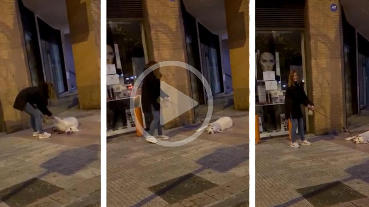 El vídeo, filmado por un policía en el que se ve a una mujer con el perro tumbado en mitad de la calle que se niega a caminar, arrasa entre los internautas: «Claro, tanto paseo…», le dice el agente.