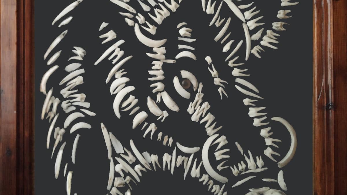 Un artista pidió a una cuadrilla de cazadores que guardasen las piezas dentales de los jabalíes que cazaban y conformó una obra en la que ilustró a un jabalí realizado con éstas.