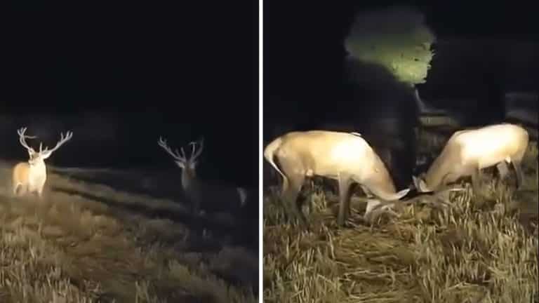 Este es el caso de los dos espectaculares venados que protagonizan el siguiente vídeo que ya circuló por los móviles de miles de cazadores el pasado año y que ahora ha dado el salto a las redes sociales. En él se puede ver cómo dos grandes machos luchan a muerte por echar al contrincante de sus dominios. Pero lo peculiar de estas imágenes es desde dónde se graban: ¡un coche que está casi pegado a los animales!