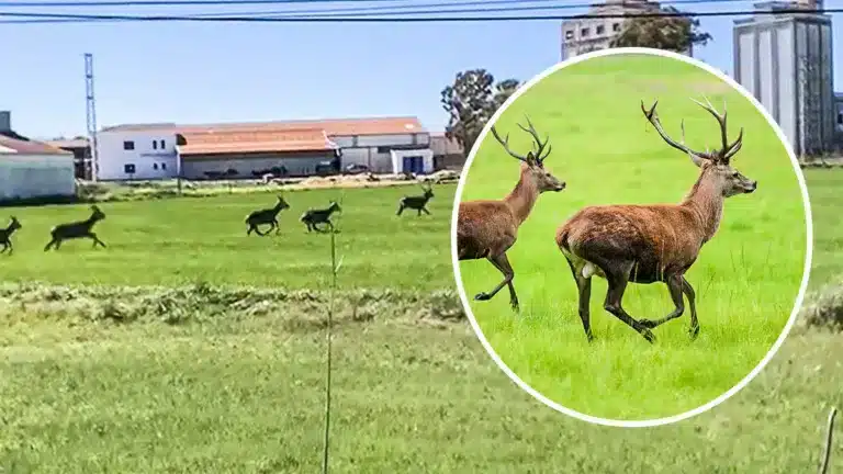El siguiente vídeo muestra, cómo un total de cinco ciervos cruzan por mitad de una siembra a toda velocidad y junto a las casas de un pueblo. Las imágenes han sido tomadas concretamente en los aledaños de la localidad pacense de Azuaga.