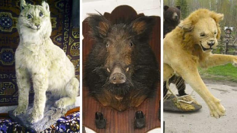 También puedes titular tú este trabajo. No sabemos muy bien qué expresión quiso darle el taxidermista a este animal, pero lo que sí sabemos es que el resultado es capaz de arrancar una carcajada al tipo más serio del mundo.