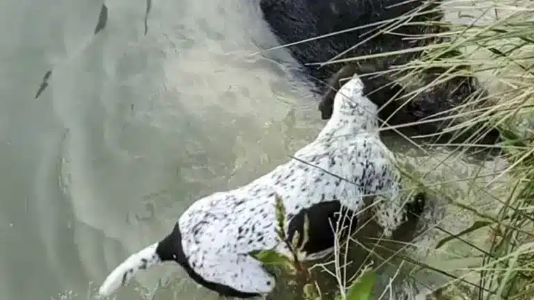 La reacción de un cazador al ver ahogarse a una cría de jabalí que cruzaba un pantano siguiendo a su madre