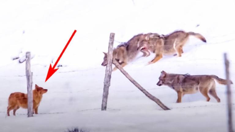 Tras un cambio de dirección con el que el perro consigue evadir a los lobos, estos lo persiguen de nuevo. Incluso uno de los depredadores casi consigue atraparlo en dos ocasiones pero, antes de que esto ocurra una vez más, el can reacciona de un modo que le salva a vida, aunque esto será mejor que lo veas.