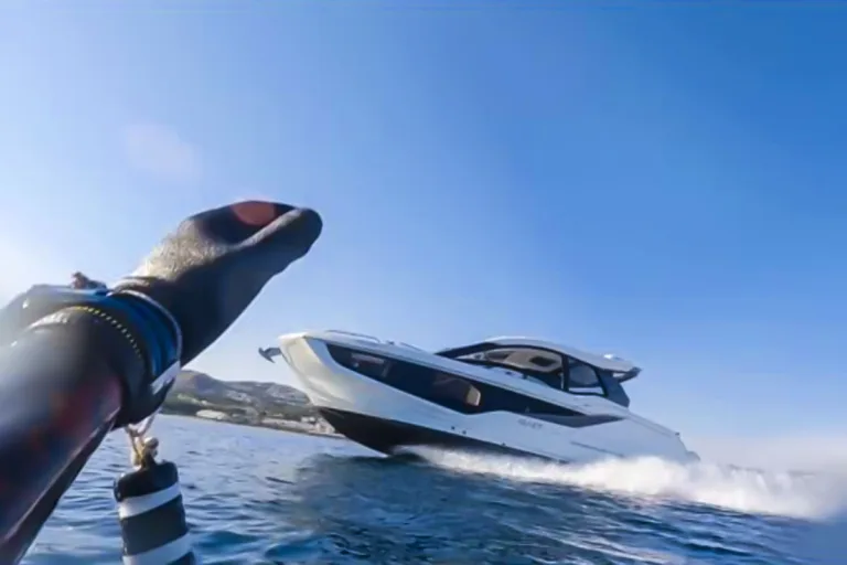 En el vídeo, publicado en Instagram por Antonio García (©antonio_h2o), se aprecia cómo una embarcación de grandes dimensiones y tres potentes motores se aproxima a gran velocidad hacia el lugar donde flota en superficie, portando una boya naranja de 90×60 centímetros, una bandera alpha de un metro de altura, un fusil de pesca submarina de 1,20 metros y realizando aspavientos y dando gritos para alertar de su presencia. Nada de esto fue suficiente para que el patrón se percatara del peligro inminente.