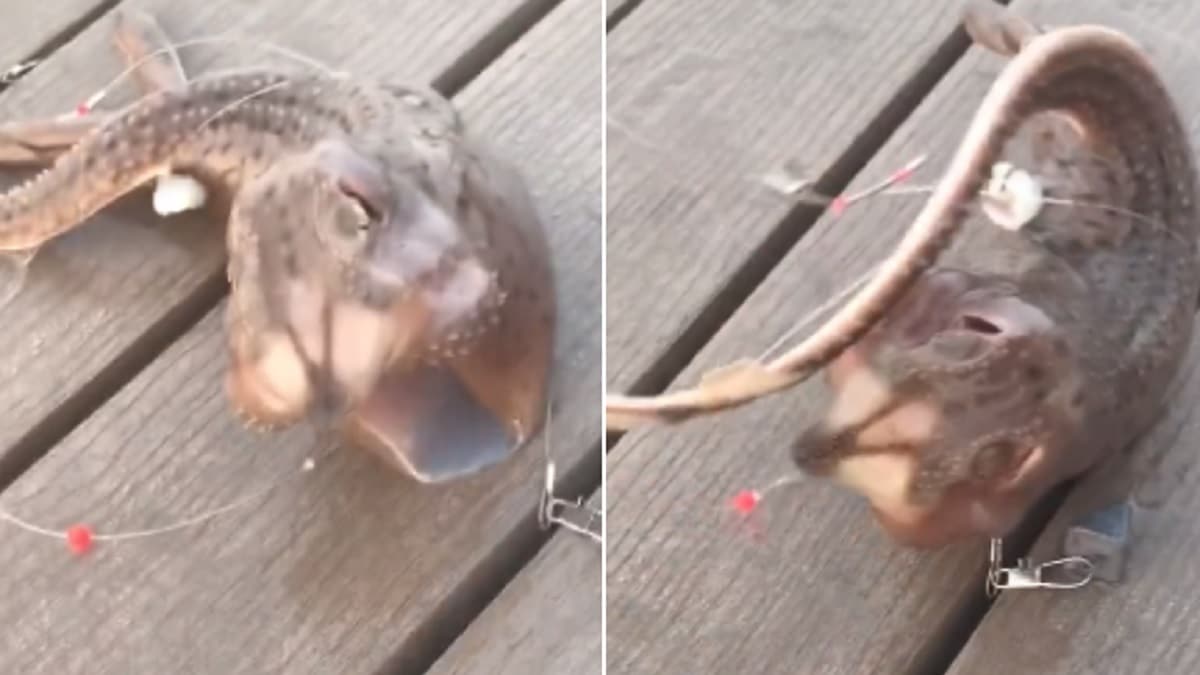 «¿Qué demonios es eso?», pregunta alarmado uno de los testigos ante el extraño animal. El vídeo, que aparentemente muestra una criatura marina con un hilo de pescar colgando de su boca, ha conseguido más de 15 millones de visualizaciones y miles de comentarios de los usuarios en las redes sociales.