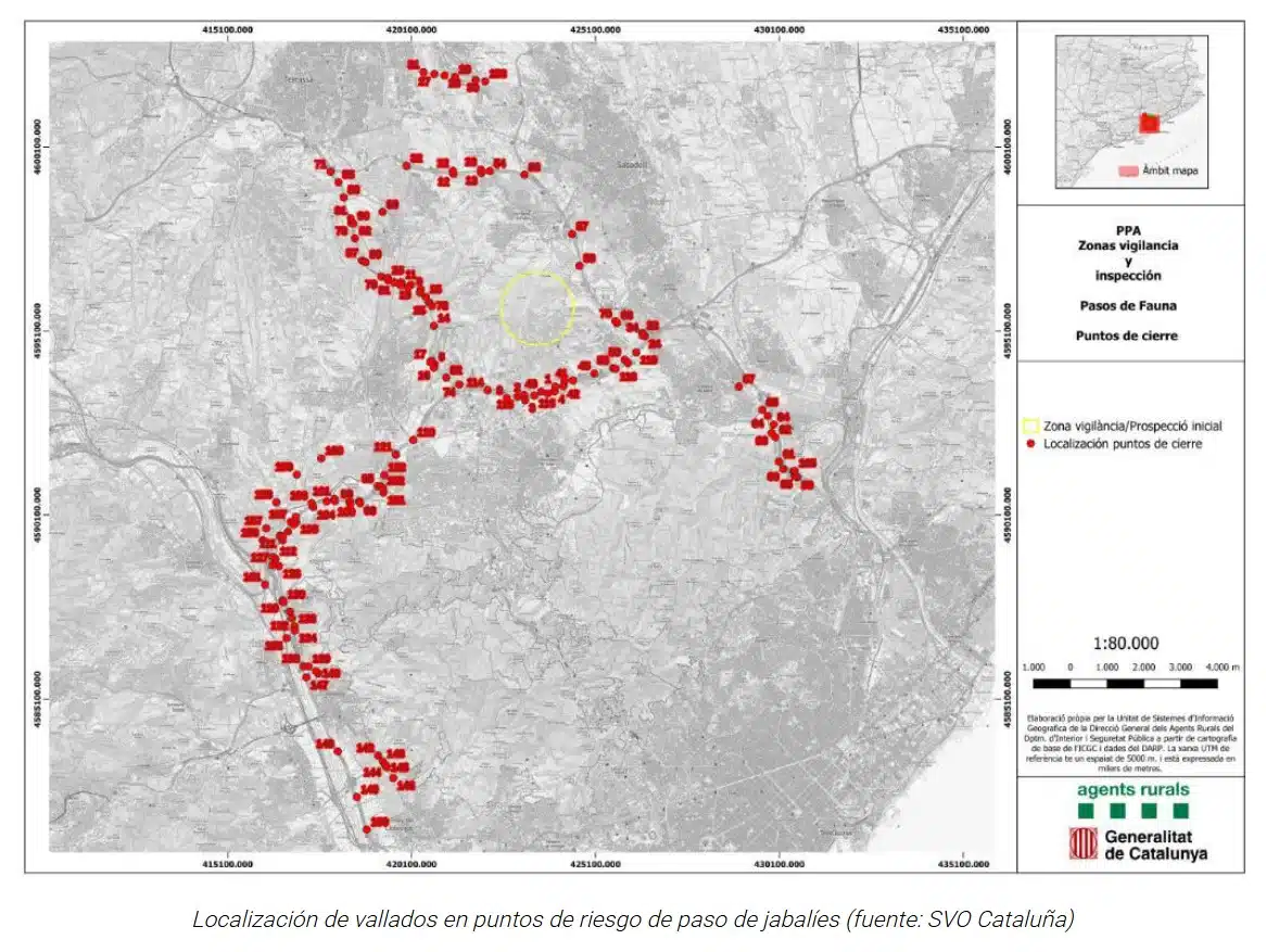 A pesar de la ampliación territorial, el MAPA insiste en que el virus se mantiene dentro del área perimetralmente vallada para frenar su dispersión. En el caso concreto de Sant Feliu de Llobregat, el cierre se apoya en un doble vallado que sigue el trazado de la autopista A2 y la línea del AVE, reforzando una barrera física estratégica.