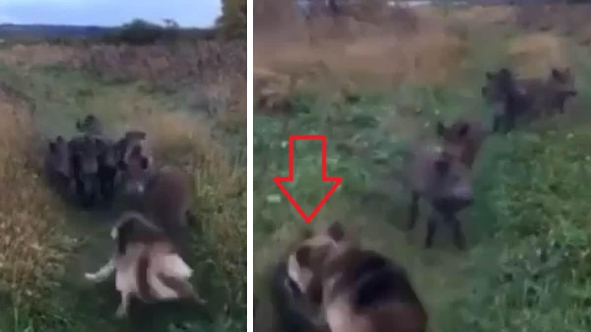Un vídeo en el que se ve a un pastor alemán que se topa con una piara de jabalíes en mitad de un camino y el enfrentamiento que poco después se sucede ha provocado multitud de reacciones en las redes sociales.