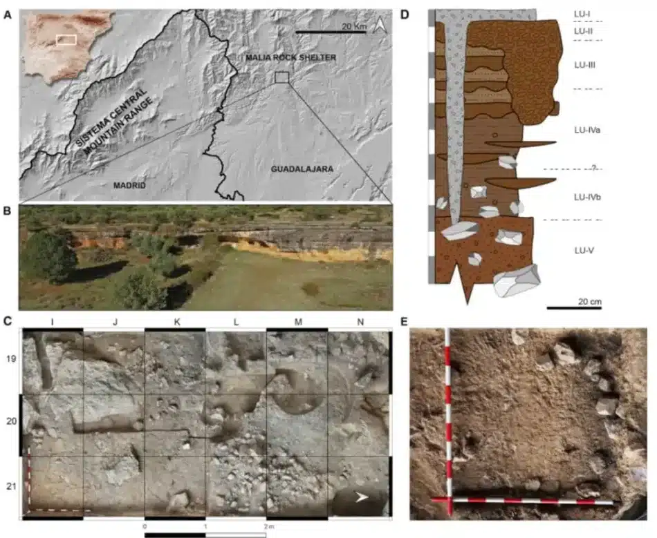El Abrigo de La Malia, enclavado en un paisaje kárstico de cuevas y abrigos naturales, ofrecía un resguardo perfecto contra el frío, la nieve y los vientos de la Meseta. Allí, las excavaciones han sacado a la luz restos de hogueras, herramientas líticas y, sobre todo, un amplio registro de huesos animales con marcas de corte y fracturas intencionales. Estas señales indican que los Homo sapiens descuartizaban las piezas, extraían la médula ósea y cocinaban la carne en el propio refugio.