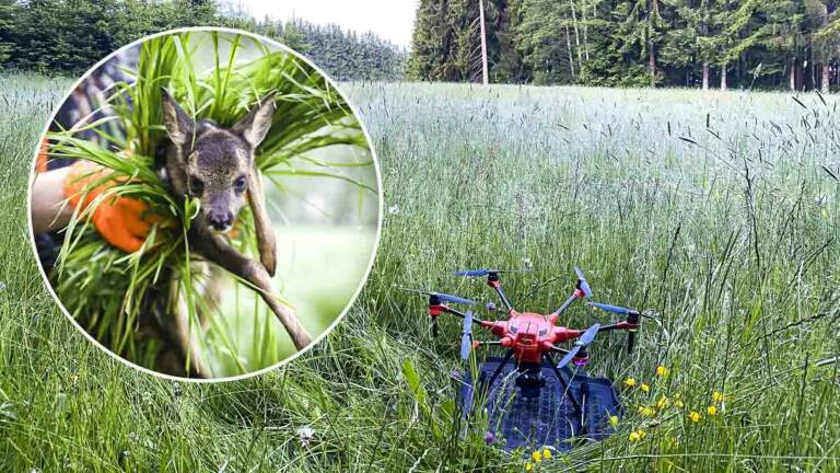 Gracias a los drones, los equipos de ‘rescatadores’ pueden intervenir antes de cosechar y así salvar a algunos de estos animales, que a menudo son víctimas de las cuchillas de las cosechadoras.