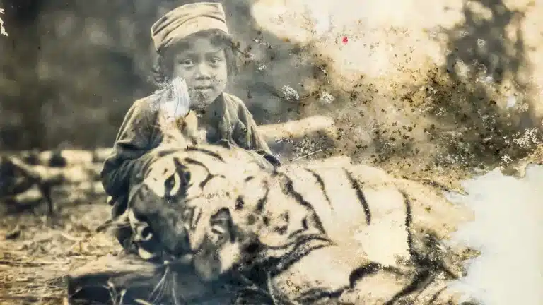 Mirando a la tigresa, sola en una habitación del piso superior dedicada a su reposo, se la reconoce como la misma bestia fotografiada en mayo de 1929. Hay un primer plano de ella con el nieto de su última víctima. Las claras rayas en forma de «Y» a ambos lados de su cabeza son inconfundibles.