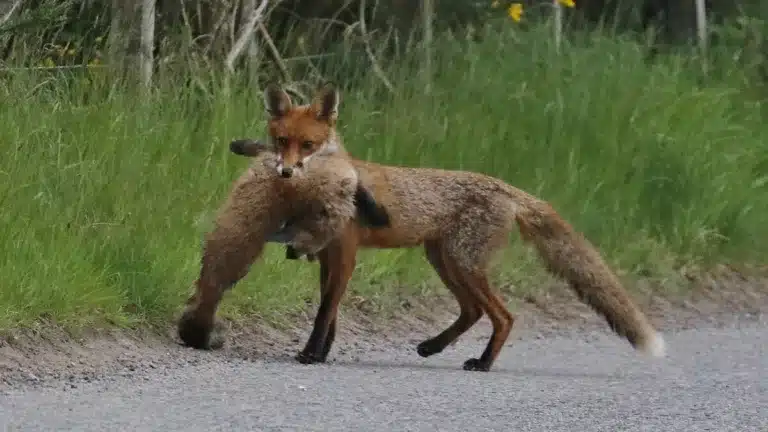 Unas nuevas imágenes tomadas por el fotógrafo de fauna silvestre Ian Bremner así lo demuestran. En estas se ve cómo un raposo sostiene a otro zorro muerto en su boca. Se trata de un ejemplar joven que probablemente murió tras una colisión con un coche.