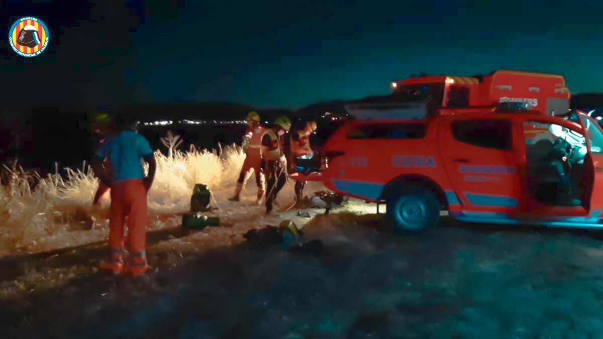 El rescate del cazador se produjo en la noche de este pasado domingo cuando los bomberos tuvieron conocimiento de que un cazador había caído por un barranco en Albaida.