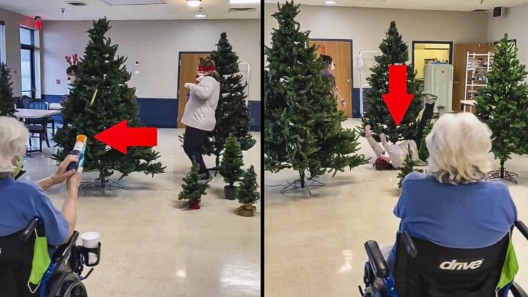 En concreto, se trata de la recreación de una montería de ciervos por parte de trabajadores de esta residencia. En ella, éstos últimos van vestidos con caretas y cuernas de ciervo y caminan entre varios árboles de Navidad mientras son disparados por los ancianos.