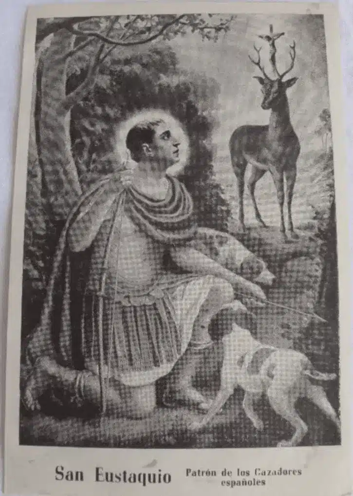 Pese a su popularidad, la historia del ciervo con la cruz no fue exclusiva de San Huberto. Siglos antes, otro santo había vivido un episodio casi idéntico: San Eustaquio, un general romano llamado Plácido que servía al emperador Trajano. Según la tradición, durante una jornada de caza vio aparecer un ciervo con un crucifijo entre las astas y escuchó también la voz de Dios.