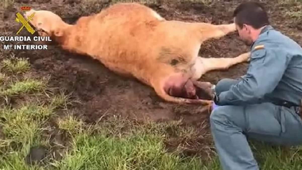 Agentes del Seprona de la Guardia Civil de Palencia han auxiliado a una vaca que estaba pariendo en un monte del norte de Palencia, no tenía fuerzas para finalizar el parto, estaba inmóvil y rodeada de cuervos y habría fallecido junto a su cría si no hubieran intervenido los agentes.