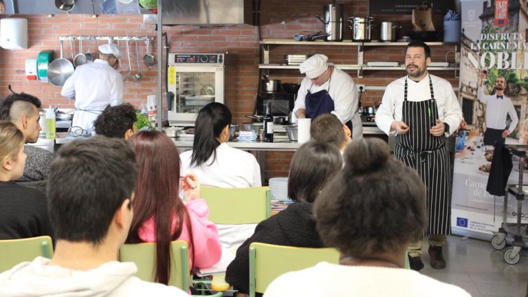 El chef Sergi de Meià ha transmitido sus conocimientos acerca de las Carnes de Caza a los estudiantes del Institut Escola d’Hostaleria de Girona. Su frescura y su crianza en medios naturales: argumentos que se han expuesto a los alumnos para demostrar la calidad de estas carnes.