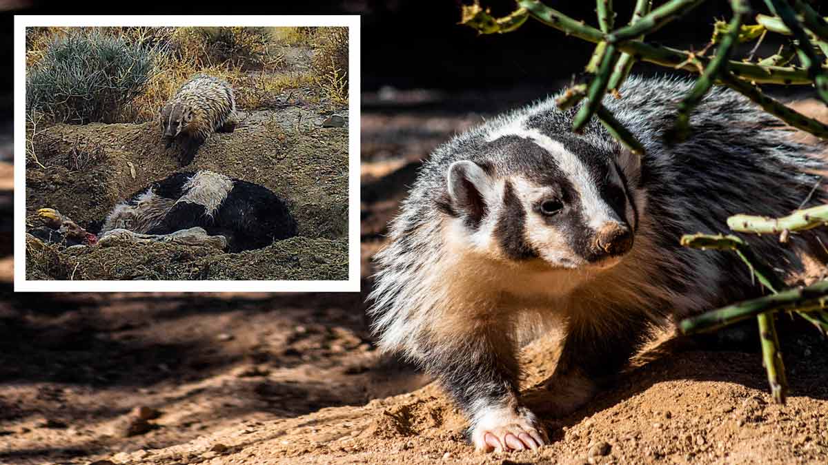 El tejón americano (Taxidea Taxus) es un carnívoro oportunista. En el más amplio sentido de la palabra. El vídeo que te mostramos a continuación da fe de ello. Si no fuera porque todo quedó grabado por un equipo de biólogos de la Universidad de Utah mientras estudiaban el comportamiento de los carroñeros en el desierto de ese estado, muchos dudarían de la credibilidad de este hecho.