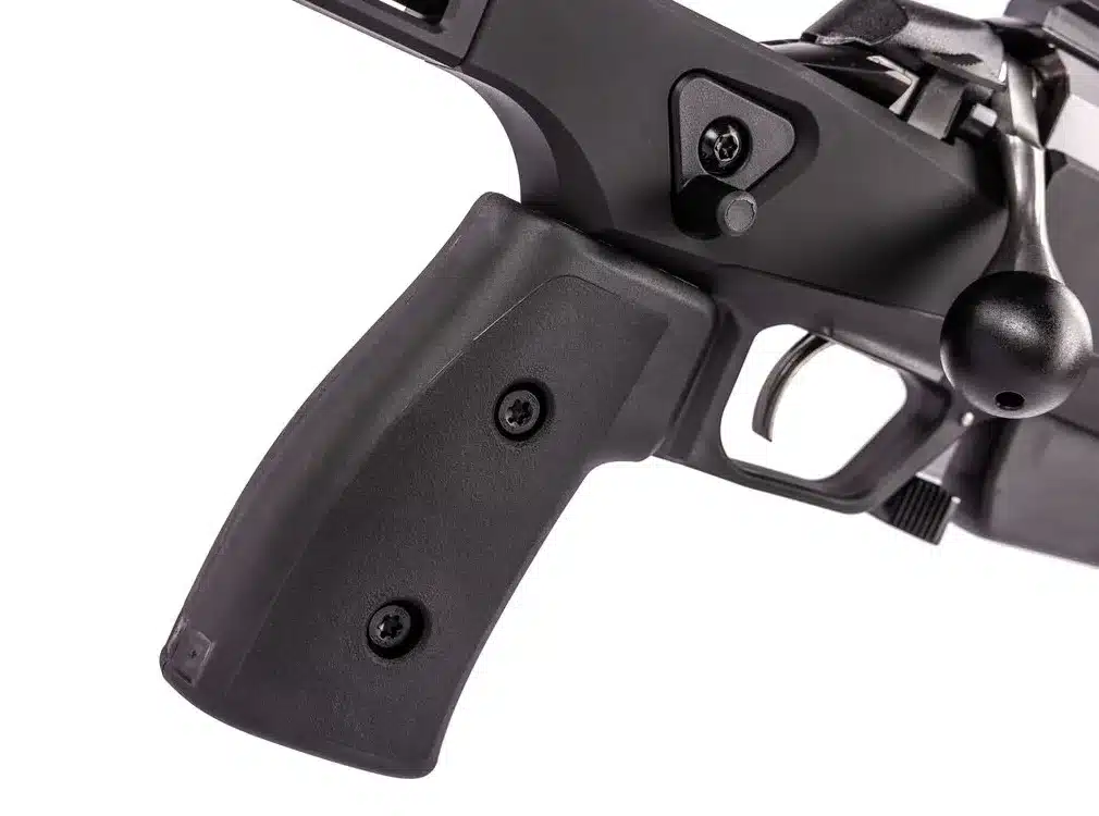 Antes de entrar en detalle con el modelo de mayor calibre, conviene subrayar que ambos rifles comparten una línea estética y funcional basada en acabados sintéticos en color negro y soluciones orientadas a la robustez y precisión.
