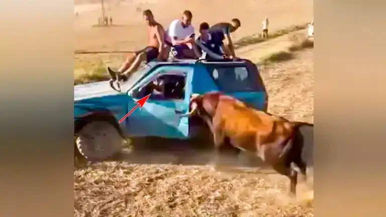 Un toro bravo ha protagonizado unas espectaculares imágenes en un encierro por el campo celebrado en un pueblo de Guadalajara. El astado ha arrancado de una embestida la puerta de un todoterreno que se encontraba en su camino. La mayoría de los ocupantes del vehículo habían salido a presenciar el festejo y se habían subido al techo para evitar ser alcanzados por el animal, pero uno de ellos aún se encontraba en el asiento del copiloto.