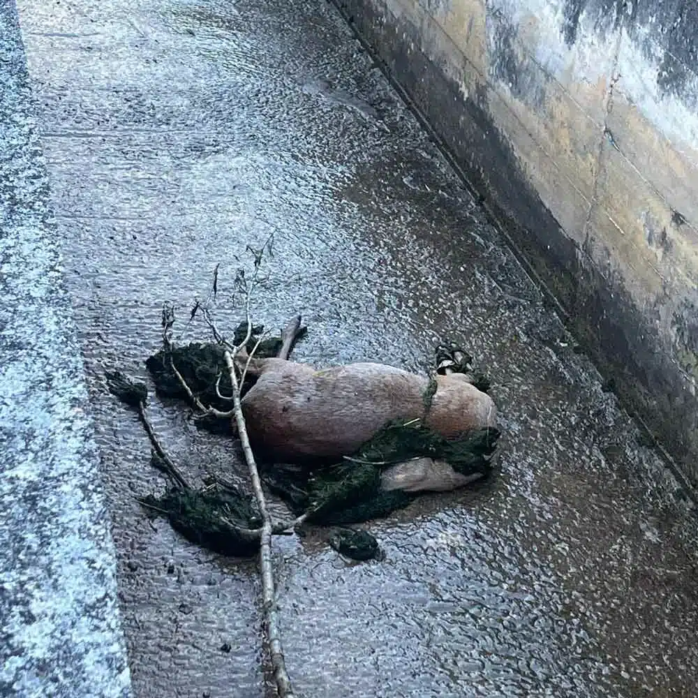 Aunque existe una rampa para que los animales puedan salir, la realidad es que no cumple su función: «Está súper inclinada, patina, no tiene escalones, y muchas veces no hay suficiente agua para que lleguen hasta ella», detalla. En lugar de ser una vía de escape, se ha convertido en el punto donde muchos mueren agotados o ahogados, según las imágenes que ha recopilado.