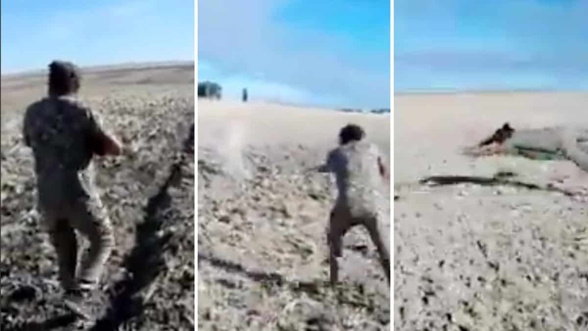 Sin munición en la escopeta, el cazador decide que lo mejor será dejar el arma a un lado. Apoya la semiautomática en suelo y decide cazar con sus manos, como un puma en plena pampa.