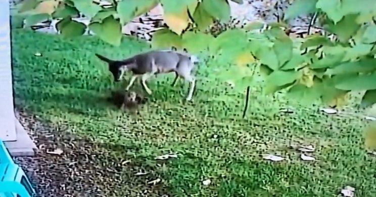 Según informa el diario DailyMail, una cámara de seguridad habría grabado el ataque de una cierva a un gato de avanzada edad. Aunque el felino intenta huir en un primer instante, finalmente el cérvido lo alcanza y lo patea en varias ocasiones hasta acabar con su vida.