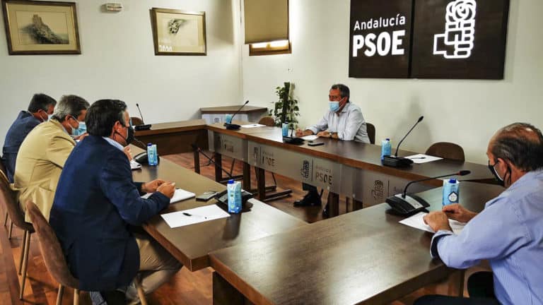 El vicesecretario general de Agricultura de UPA Andalucía, Francisco Moscoso; y el presidente de la Federación Andaluza de Caza, José María Mancheño, se reúnen con el secretario general del PSOE regional, Juan Espadas, para transmitirle la preocupación de agricultores y cazadores sobre el hecho de que tanto el Gobierno central como la Junta de Andalucía se hayan instalado en una especie de «cruzada ecologista» sin tener en cuenta las repercusiones negativas que para el campo tendrá la legislación que quieren aplicar de protección a los animales.