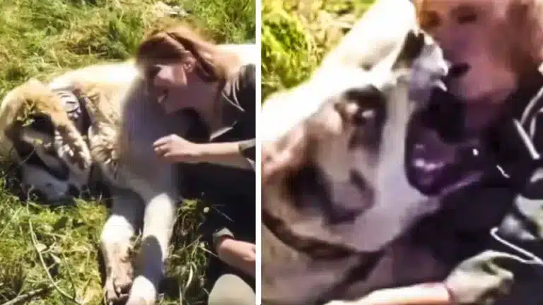 No satisfecha con eso, cuando el can se incorpora, ella coloca su cara a escasos centímetros de su cabeza y la rodea con su brazo derecho. Ante ello y como forma de demostrar su enfado por la situación, el perro le lanza un bocado a la mujer.