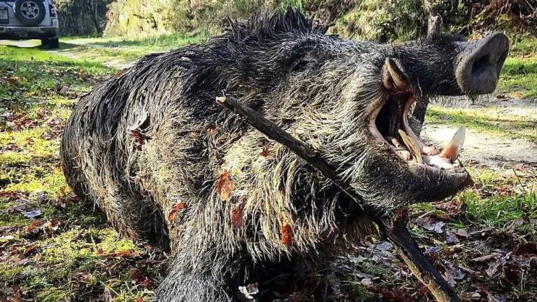 Por otro lado, al día siguiente -el pasado domingo 28 de enero- el grupo de cazadores gallego consiguió su última gran captura en un gancho en el que vieron gran cantidad de corzos. A primera hora de la tarde, apareció este gran animal hallado por Ángel Soto, uno de sus componentes.