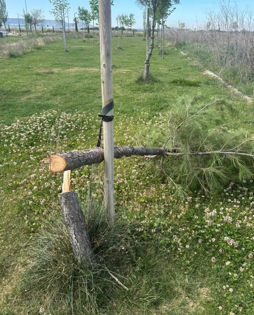 La escena con la que se topó un vecino al pasear por una zona verde de Azuqueca de Henares (Guadalajara) ha generado una profunda indignación entre los habitantes del municipio. Hasta 35 pinos de apenas cinco y seis años de crecimiento aparecieron cortados por el tronco, algunos a distintas alturas, en lo que el Ayuntamiento ya ha calificado como un acto vandálico de gran gravedad.