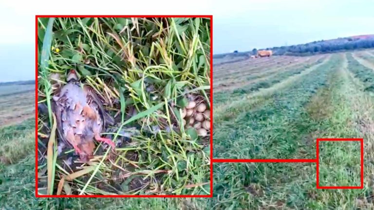 Un vídeo en el que se ve a una perdiz muerta junto a un nido en el que hay una docena de huevos ha avivado la polémica sobre la compatibilidad de la gestión de la perdiz roja y las cosechas en verde.