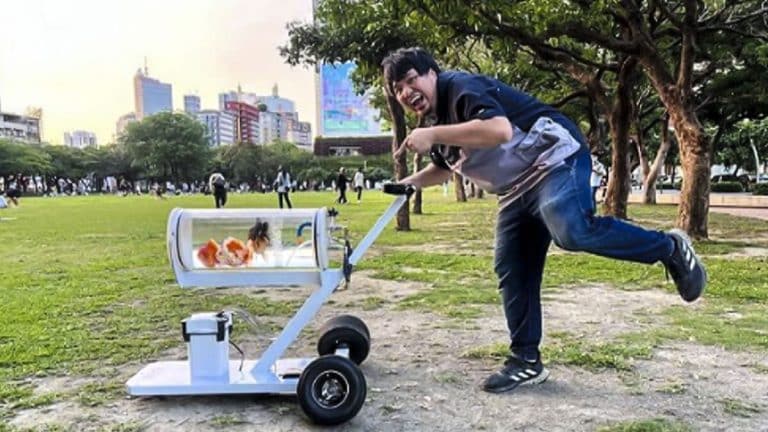 Hay imágenes que nunca dejarán de sorprendernos, como la del siguiente ‘youtuber’ de Taipéi, la capital de Taiwán, que se ha hecho viral en los últimos días por la pecera portátil similar a un carro de bebé con la que saca a sus peces.
