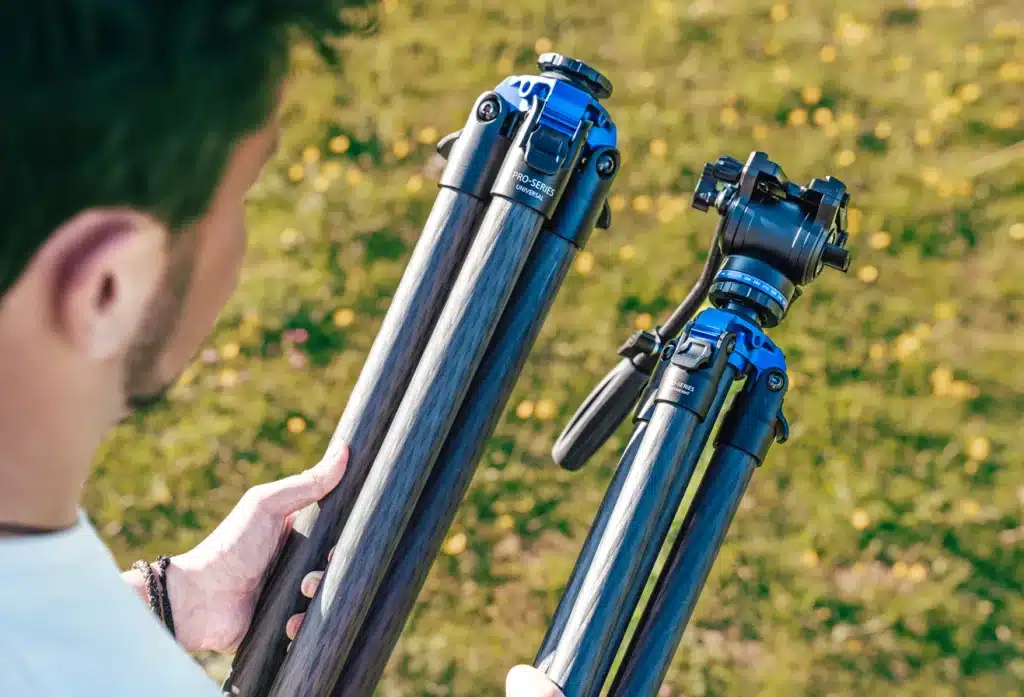 Todos ellos comparten una base sólida: patas de fibra de carbono de 10 capas, cierres giratorios ampliados para un ajuste sencillo y silencioso, columna central desmontable, pies de goma optimizados (y pinchos incluidos) y sistema de montaje Arca-Swiss con placa adaptadora antideslizante. Además, permiten ajustar el ángulo de apertura de las patas (24°, 55° y 85°) con una sola mano, incluso con guantes.