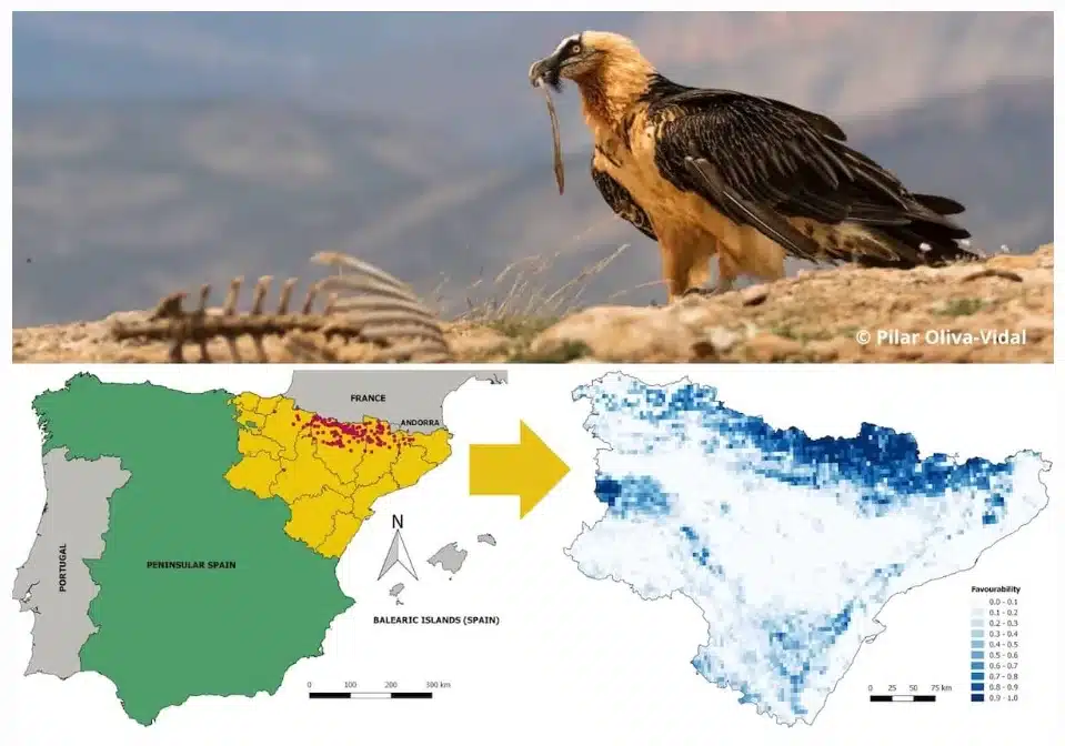 La investigación, liderada por el Instituto de Investigación en Recursos Cinegéticos (IREC – CSIC, UCLM, JCCM) junto al Instituto Pirenaico de Ecología (IPE-CSIC), ha aplicado modelos de distribución de especies para predecir las zonas más favorables para el quebrantahuesos en España. Gracias al análisis de 141 territorios reproductivos durante el periodo 2012-2021, los científicos han identificado las claves ambientales que permiten a esta especie criar con mayor eficacia.